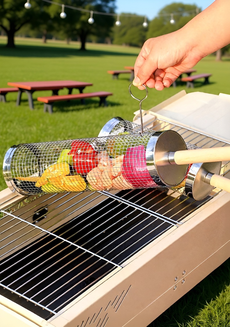 ● Compact and lightweight, this BBQ grill basket is ideal for picnics, camping, and outdoor gatherings, fitting easily into your travel gear.